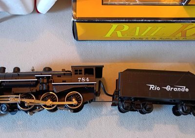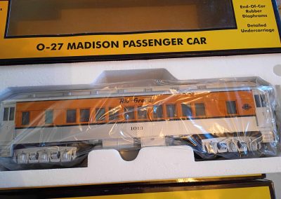 4-6-0 Rio Grande Steam loco and 6 matching O-27 Madison style passenger cars. Price: $250.00