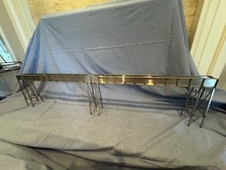Custom Aluminum Trestle Bridge, weight 5.5 lbs., support bases 2.5” x 3.5”, bridge deck 4’ long, 2” wide $60USD.