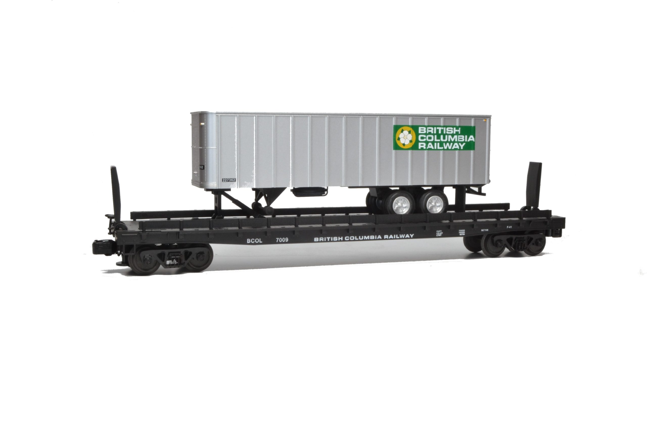 The CTTA Trailer-on-flatcar club car for 2012 is our first Weaver Trailer-on-Flatcar model. This highly detailed model has a silver road trailer decorated in the British Columbia Railway white on green with the trillium flower emblem. The wooden deck flatcar is lettered to match. A very limited-production run comes in three road numbers for both 2-rail and 3-rail operators.